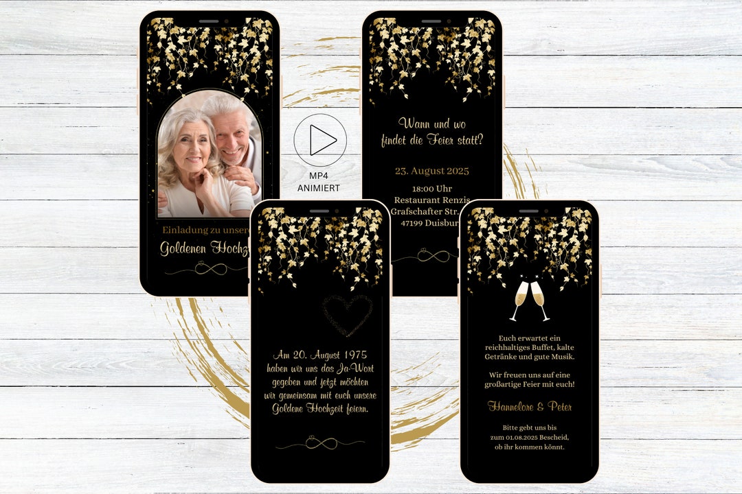 Digital Golden Wedding Invitation for Whatsapp Personalized Etsy